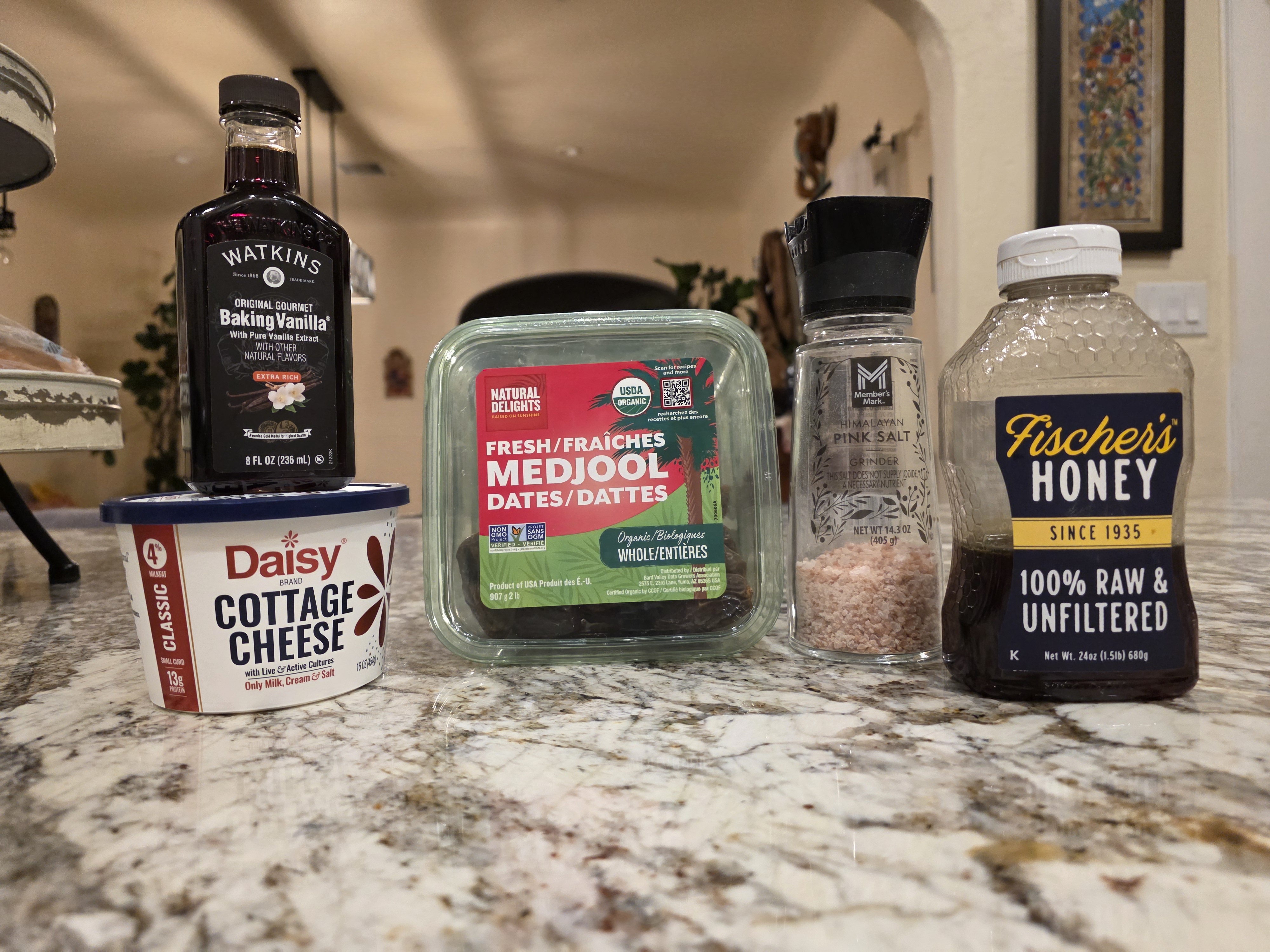 - Add the cottage cheese, honey, vanilla, and sea salt into a blender or food processor and blend until smooth.