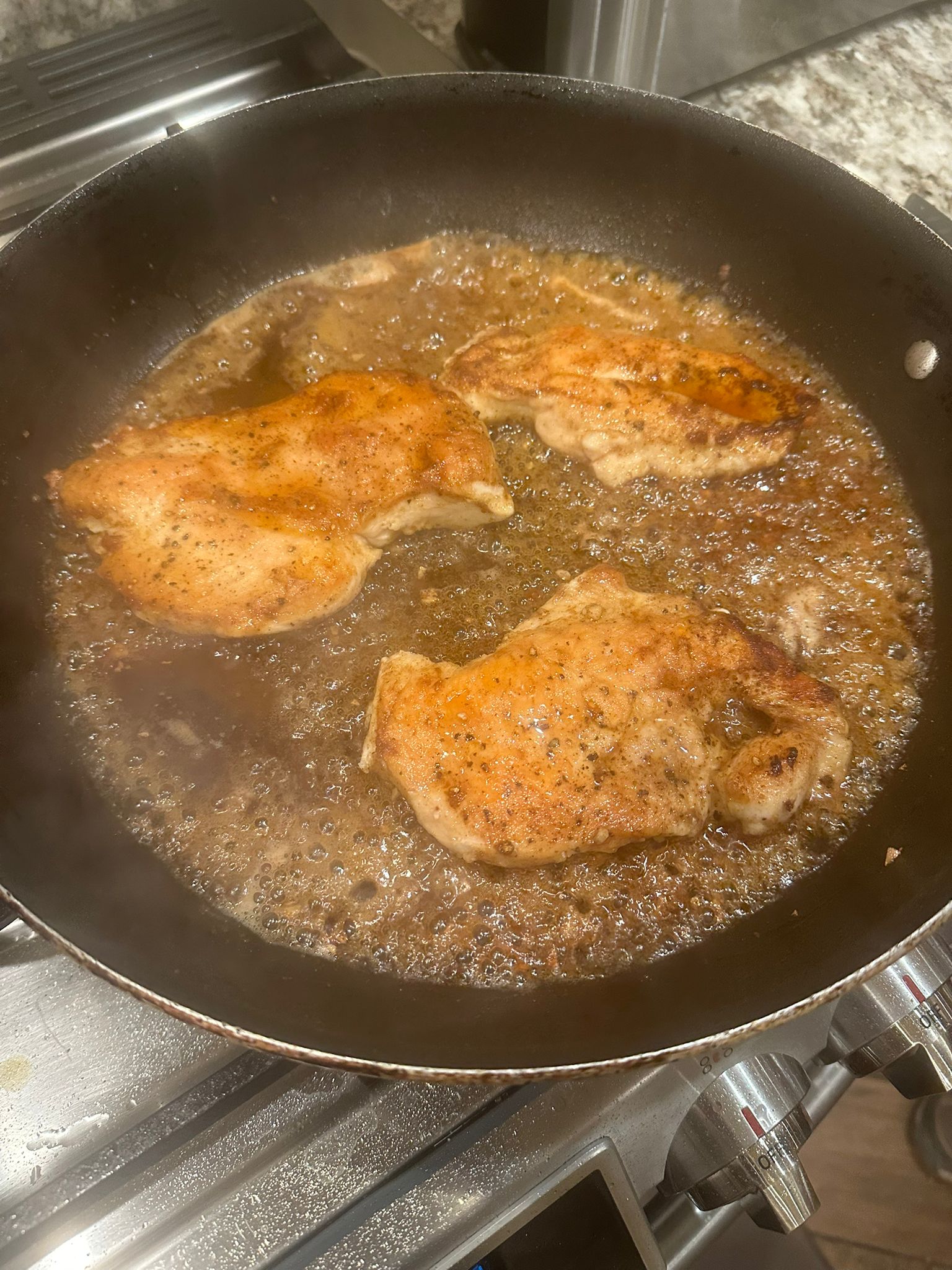 Lightly dredge each piece in flour and shake off the excess. This helps the chicken form a light crust and allows the sauce to cling beautifully. - Sear the chicken